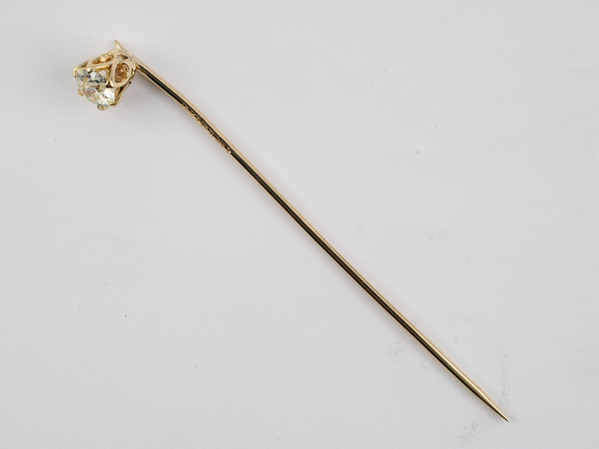 14K Yellow Gold Diamond Basket Set 6-Prong Tulip Setting "Circa 1903 " Stick Pin, 1 Old European Cut Diamond Est .45 CTS