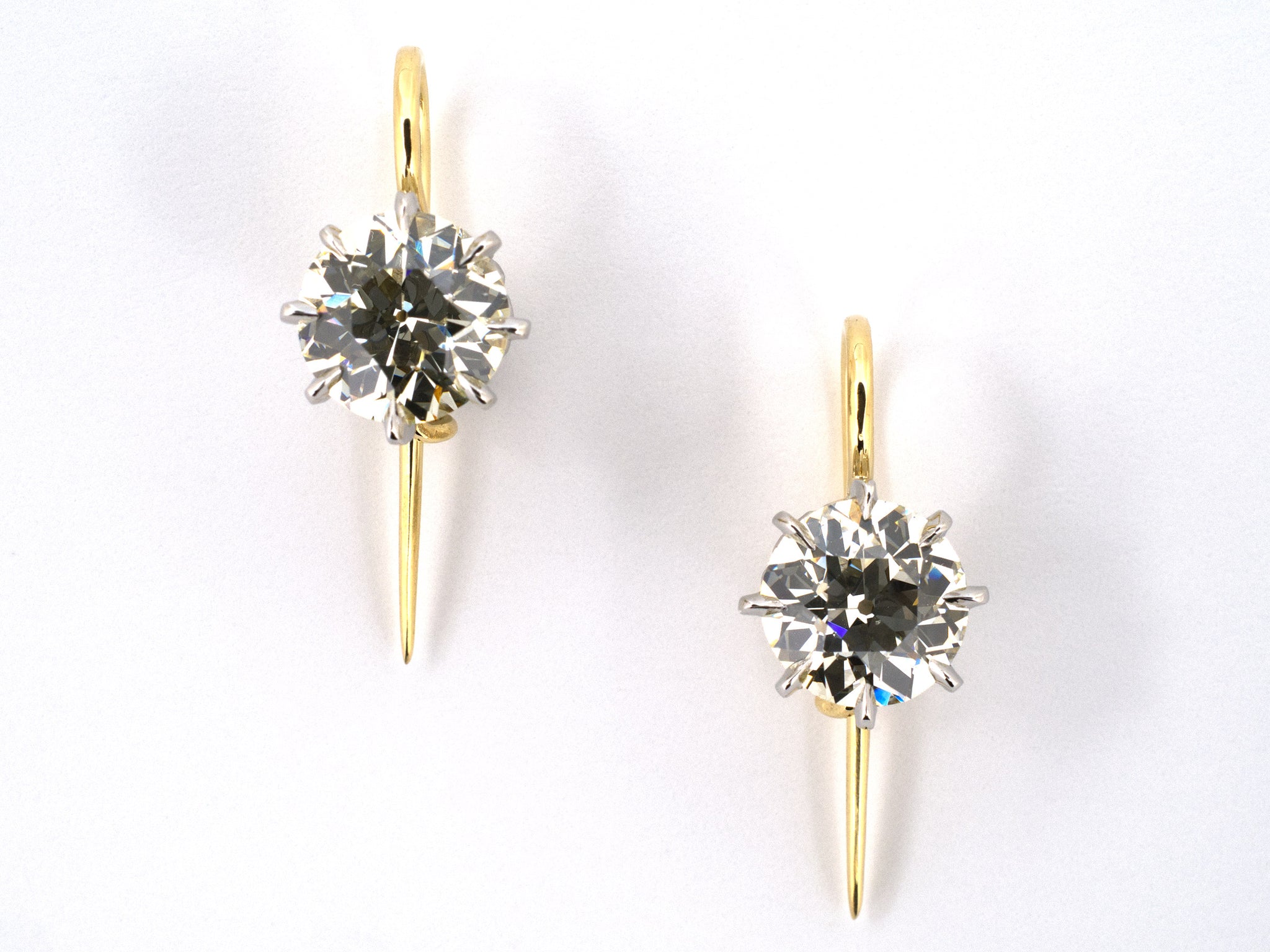 Platinum On 18K Filigree Basket 8-Prong Earrings W/ Kidney Wire Backs, 2 Diamonds 2.43Cts