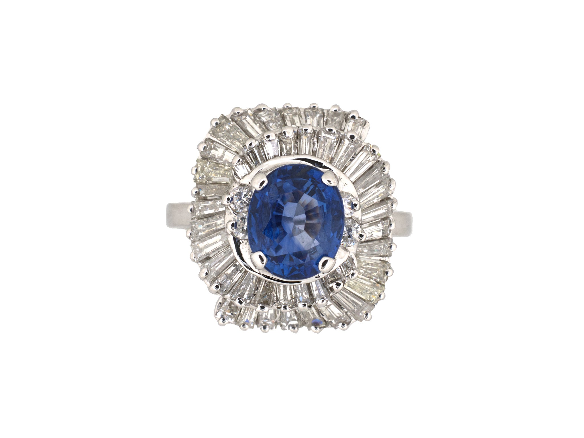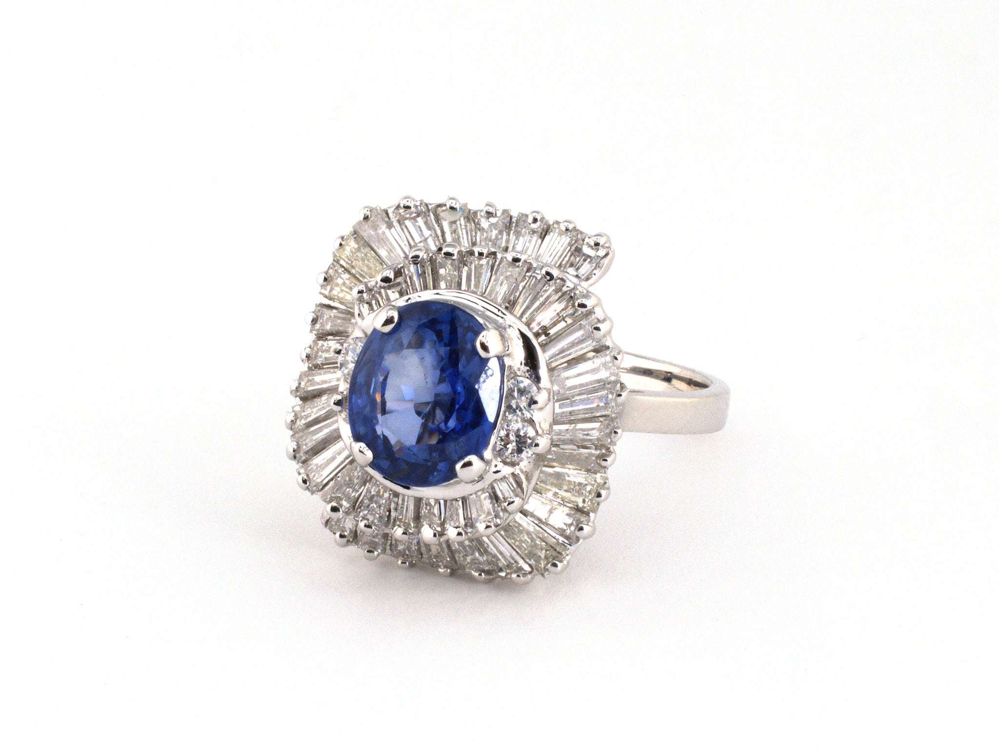 18K White Gold Sapphire Diamond Tiered Circa 1960S Ballerina By Pass Ring, Size 7 1/2, 1 Sapphire 2.14 CTS, 48 Diamonds Est 2.65 CTS