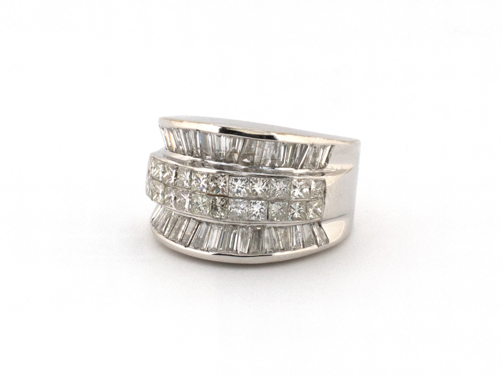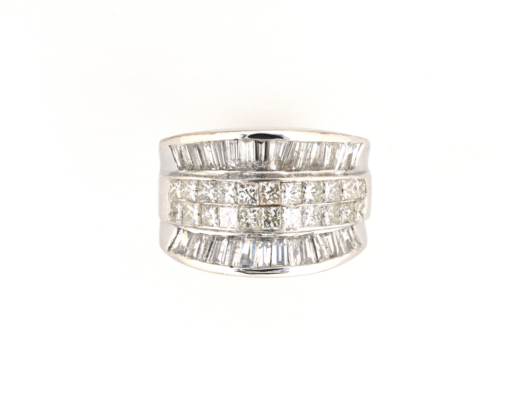 14K White Gold Diamond 3-Row Wedding-Band Ring, Size 7, 54 Diamonds Est 2.75 CTS