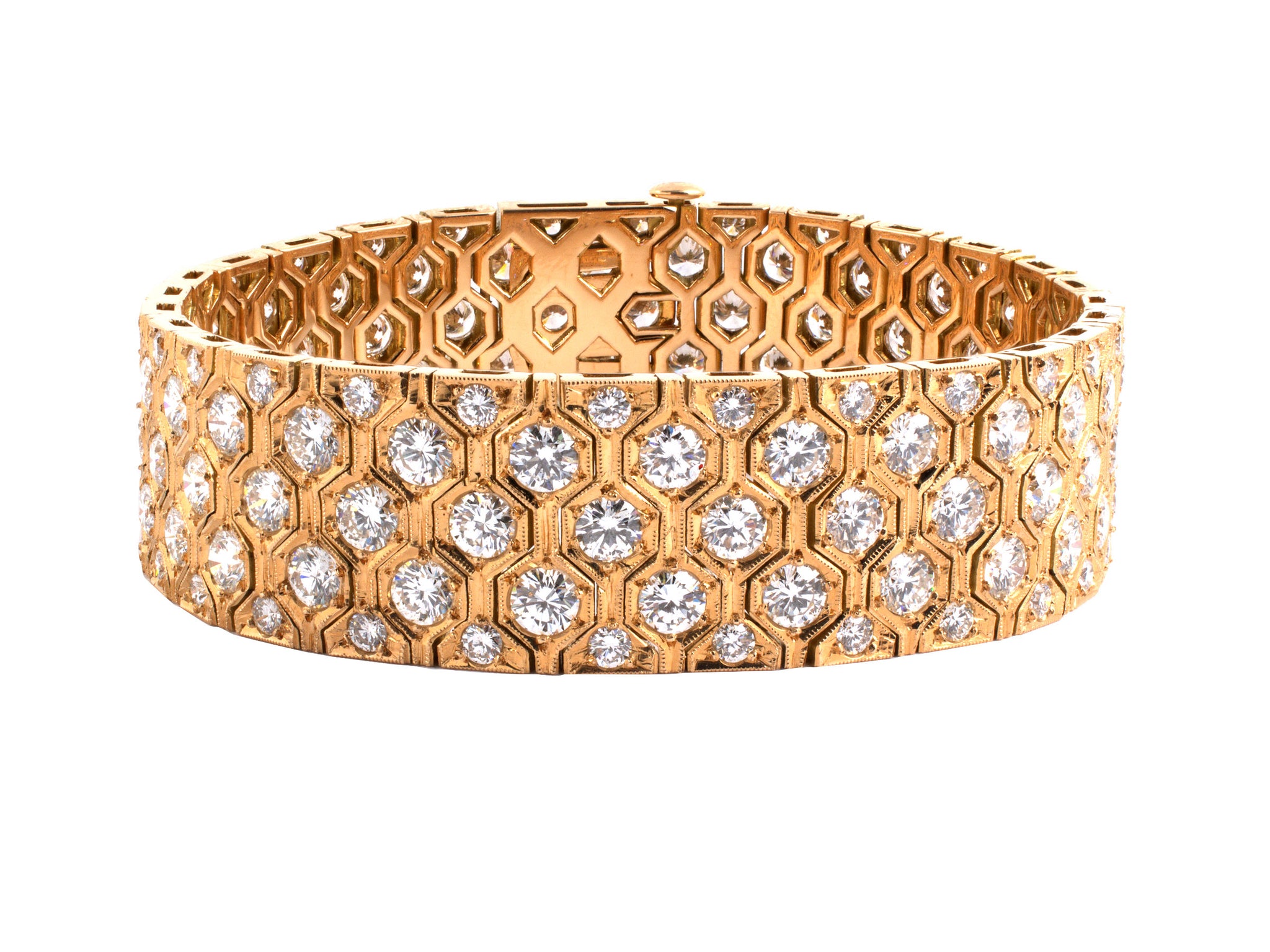 18K Rose Gold Diamond Millgrained Honeycomb Design Circa 1950S 5-Row Bracelet, 6 3/4" 140 Diamonds Est 16.00 CTS