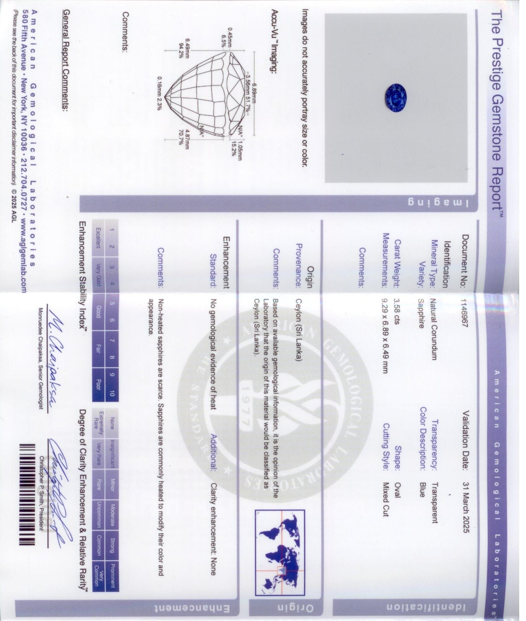 Platinum AGL Ceylon Sapphire Diamond Tapered Spread Center Bracelet, Circa 1950 , 7 1/4" , 1 Oval Sapphire 3.58 CTS AGL "Ceylon, No Heat", 163 Diamonds Est 7.00 CTS, 66 Round Saphires Est 16.00 CTS, 67 Total Sapphires Est 19.58 Total Weight