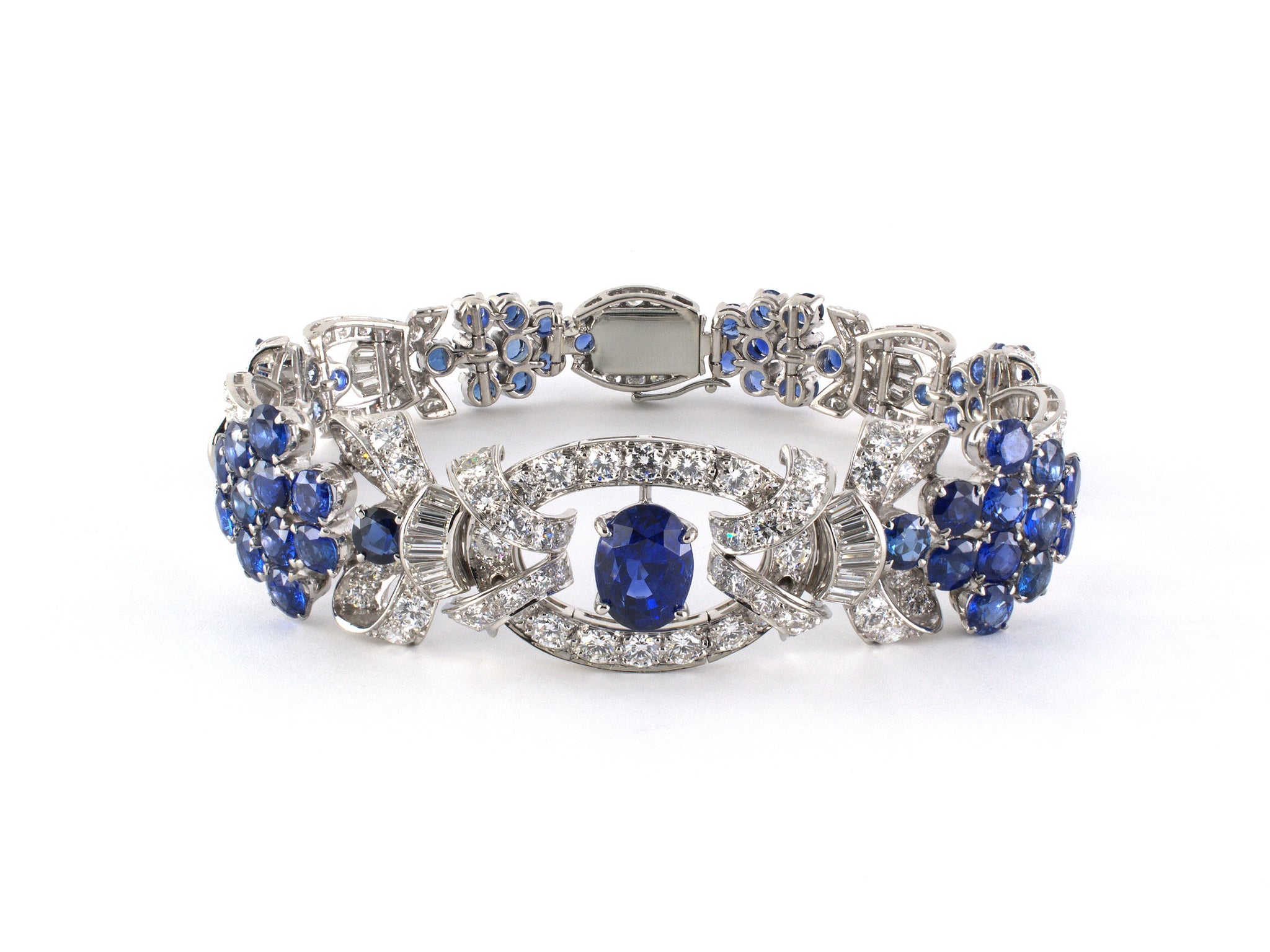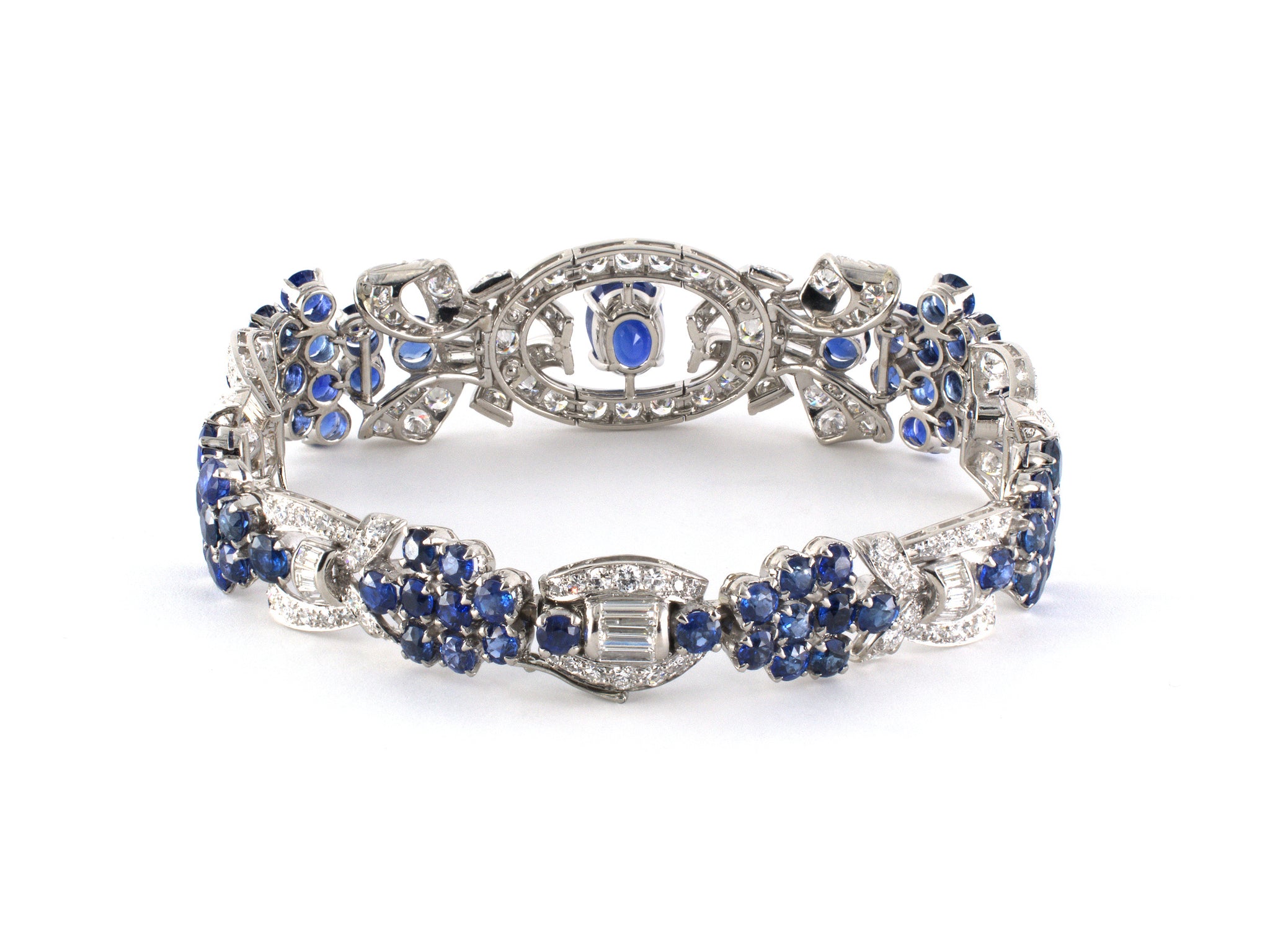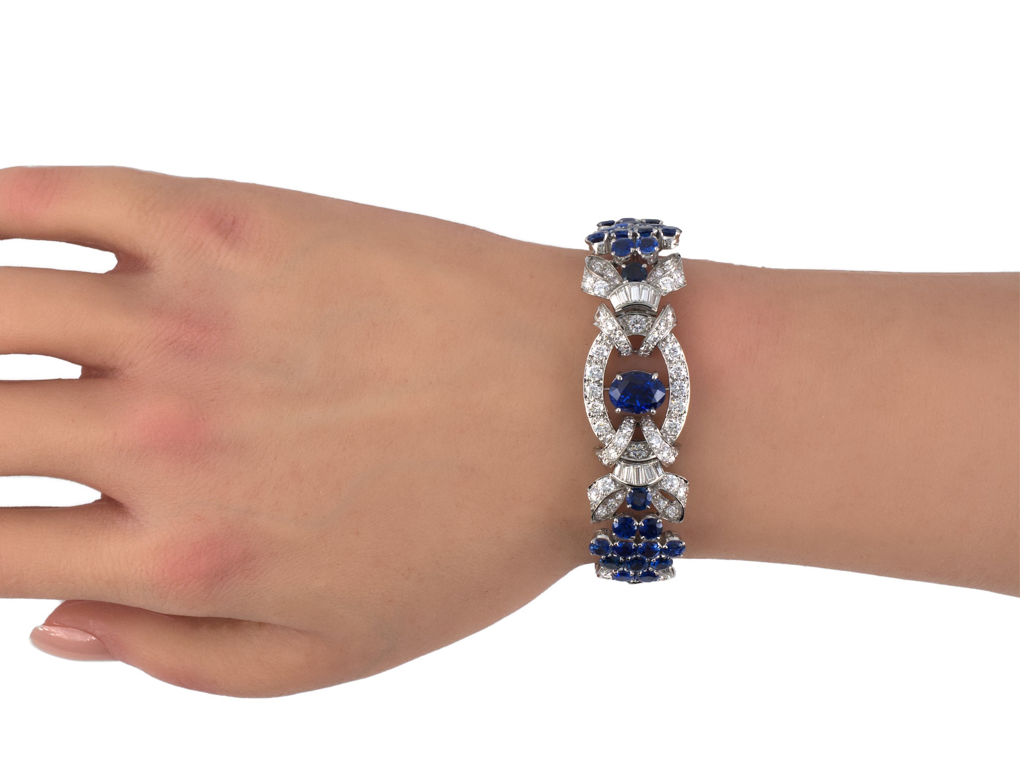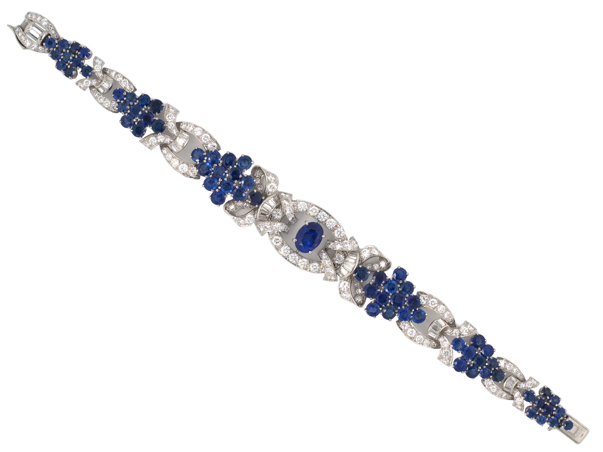 73589 - Circa 1950 Platinum AGL Ceylon Sapphire Diamond Bracelet