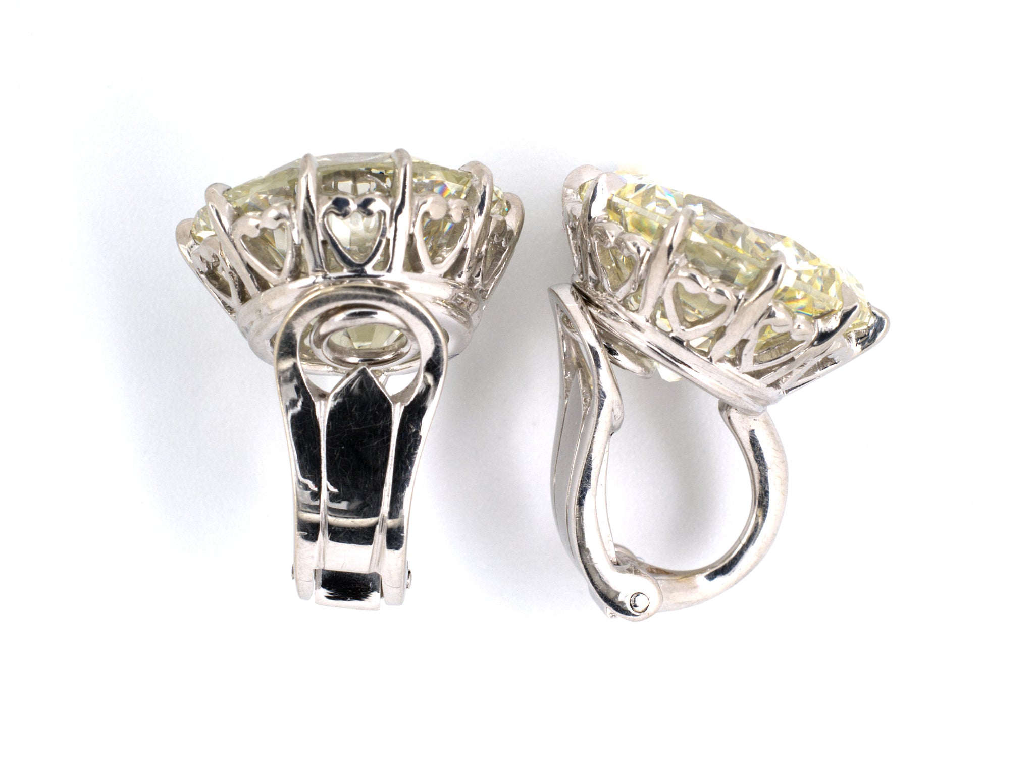 Platinum Diamond GIA Filigree Basket Stud Clip Earrings With 18K White Gold Clip Backs, 2 Diamonds 16.15 CTS (M-VVS2, N-VS2)