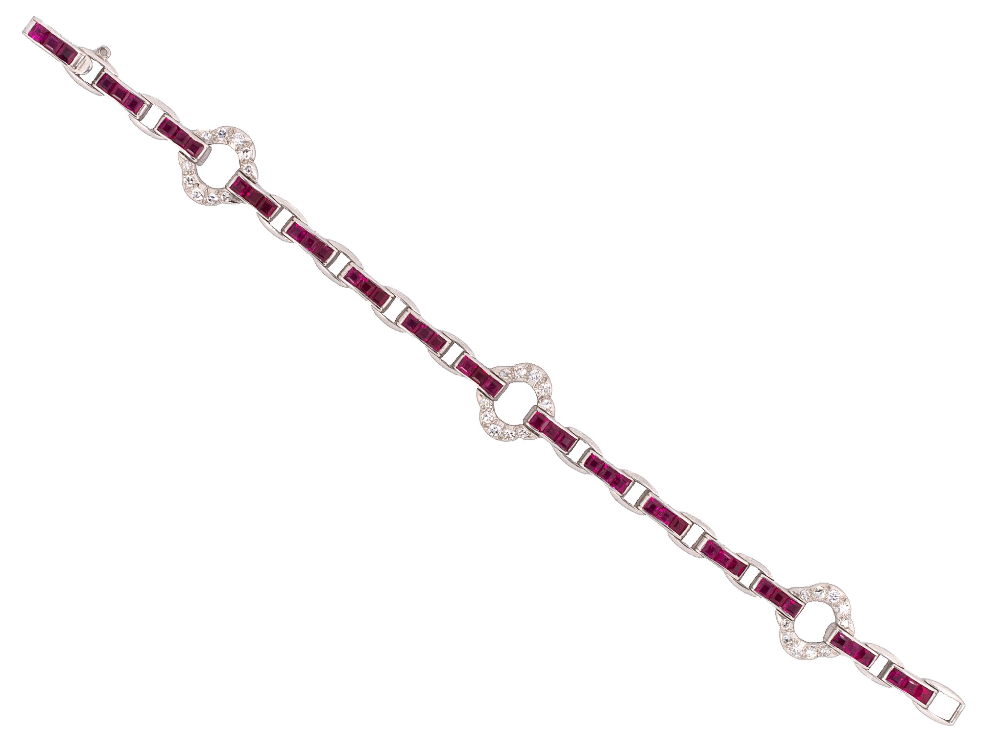 72687 - Art Deco Cartier Platinum Ruby Diamond Tank Link Bracelet