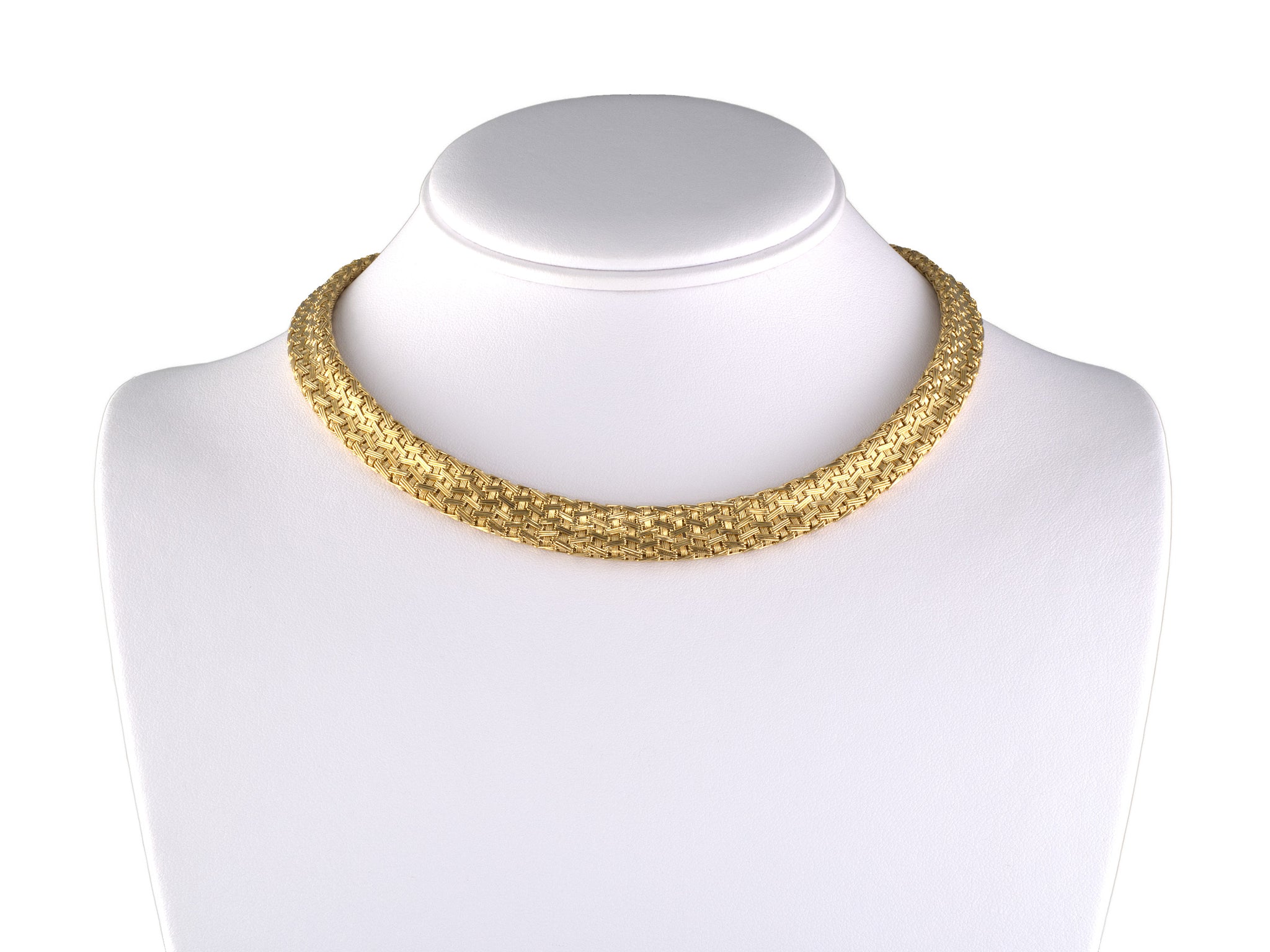 18K Yellow Gold Woven Wire Mesh Circa 1980'S Italy Necklace 3/8" Wide, 15 3/4"