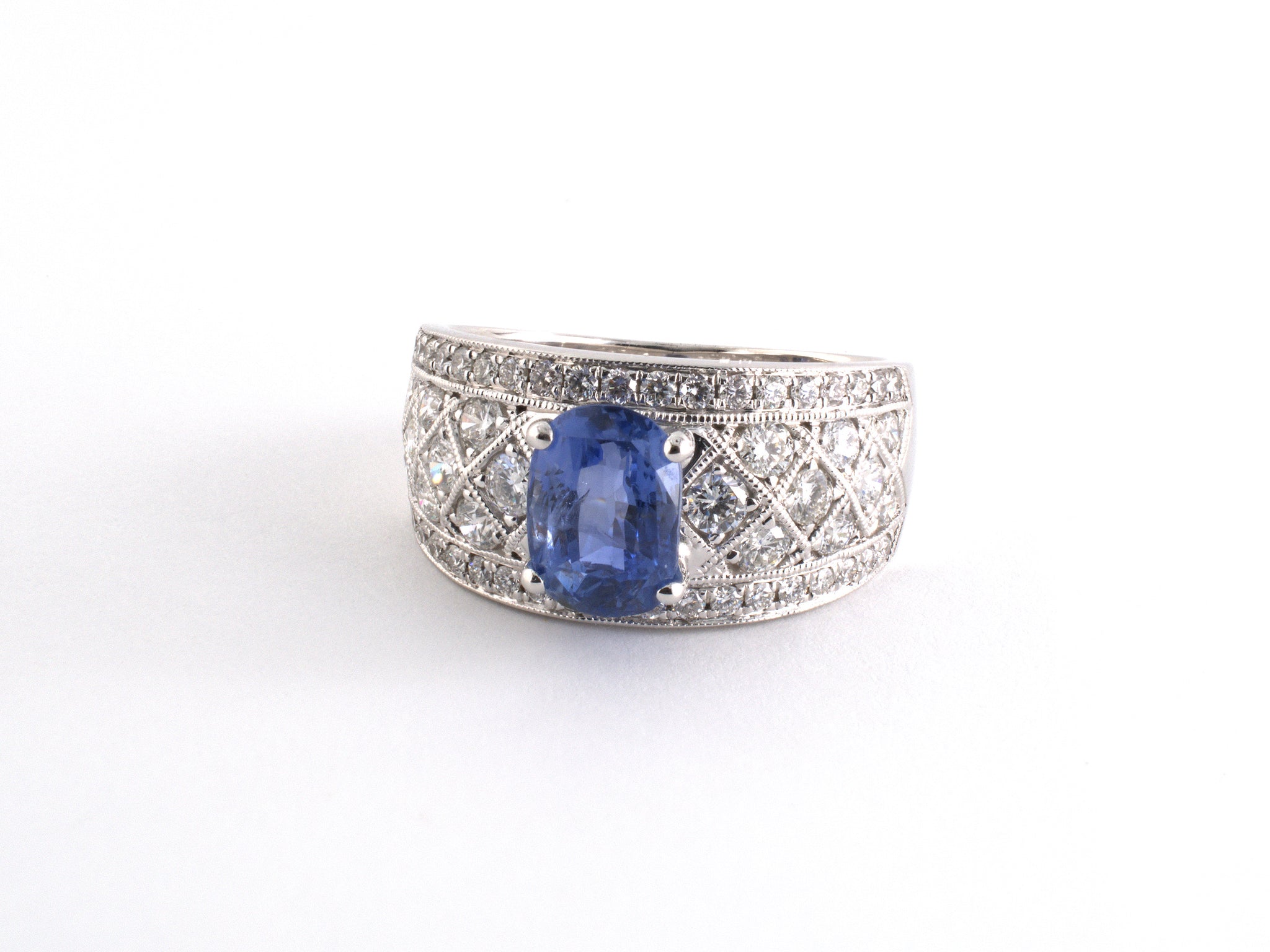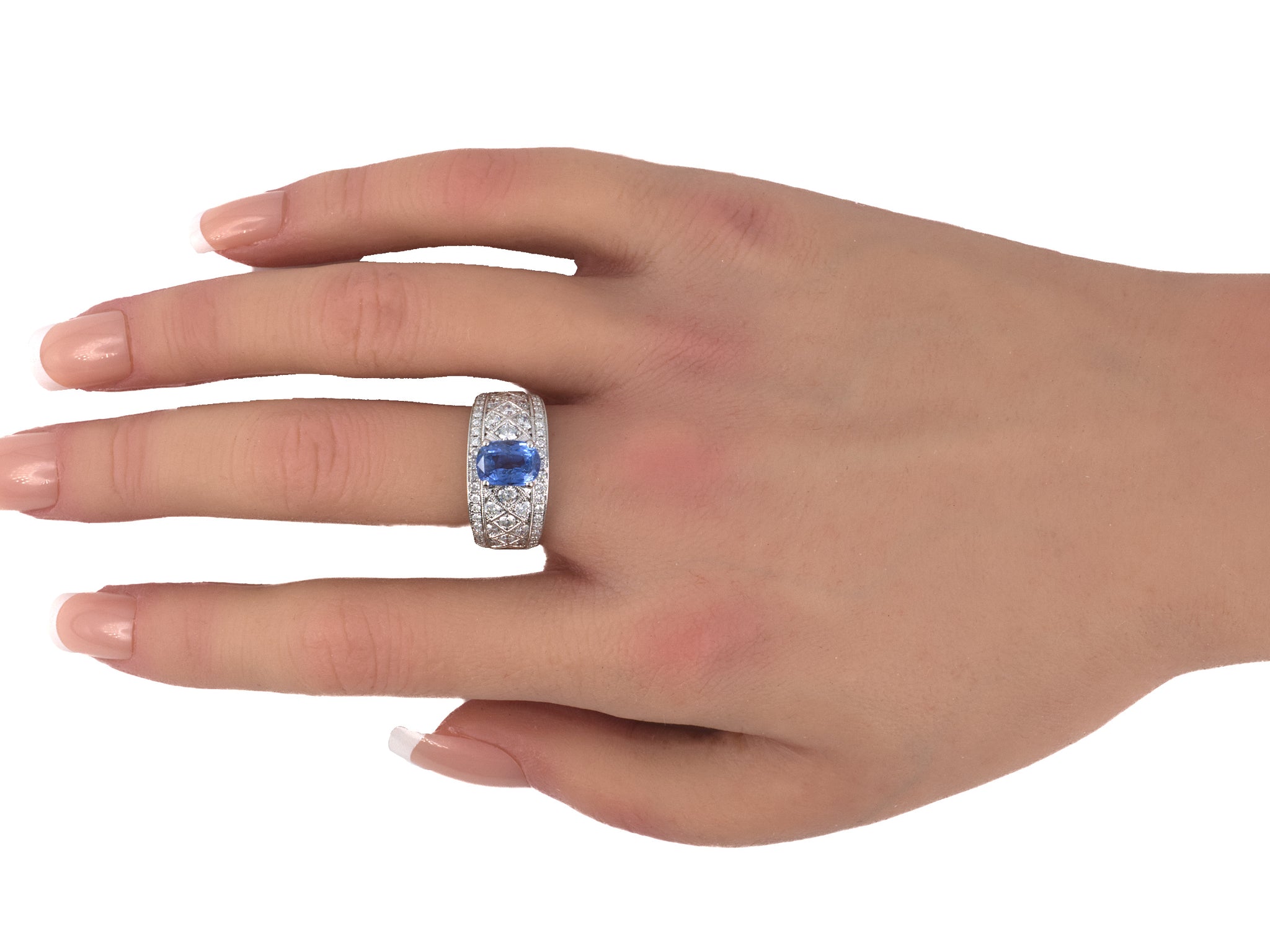 18K White Gold Diamond AGL Sapphire Cocktail Wedding-Band Ring, Size 7 1/4, 1 Ov Sapphire 2.30 CTS AGL: "Ceylon - None", 56 Diamonds Est 1.15 CTS