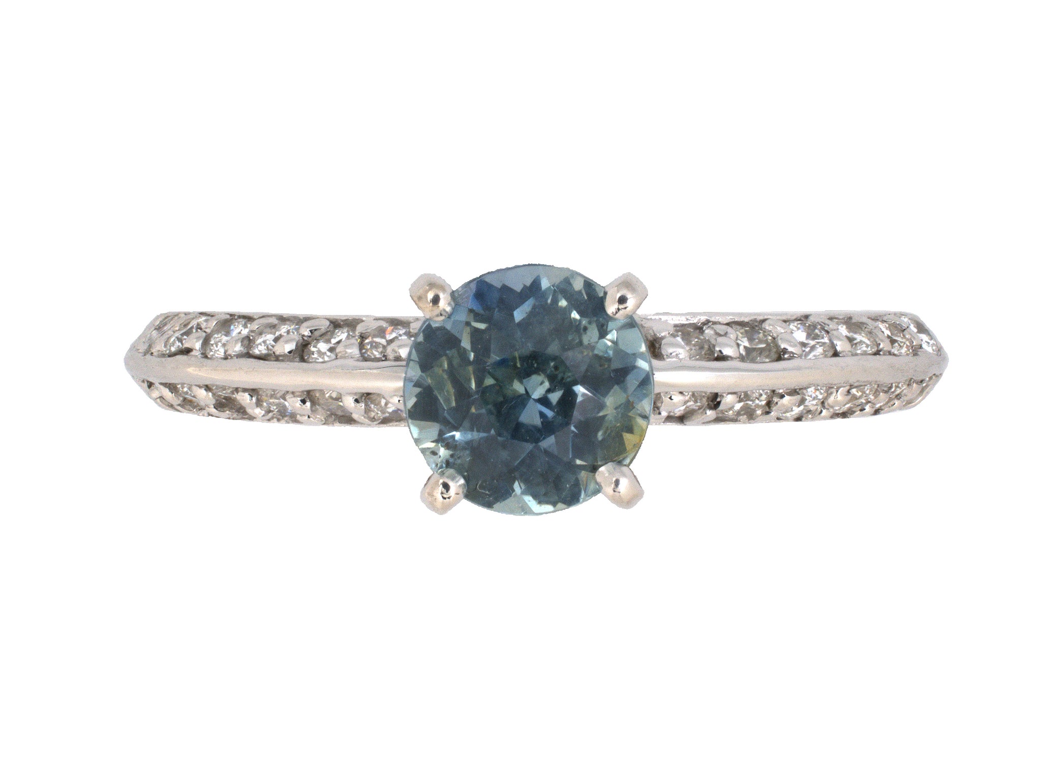 14K White Gold AGL Sapphire Diamond 2-Row Split Shoulder Engagement Style Ring, Size 6 1/2, 1 Sapphire .92 CTS AGL: "Montana - None", 24 Diamonds Est ,45 CTS