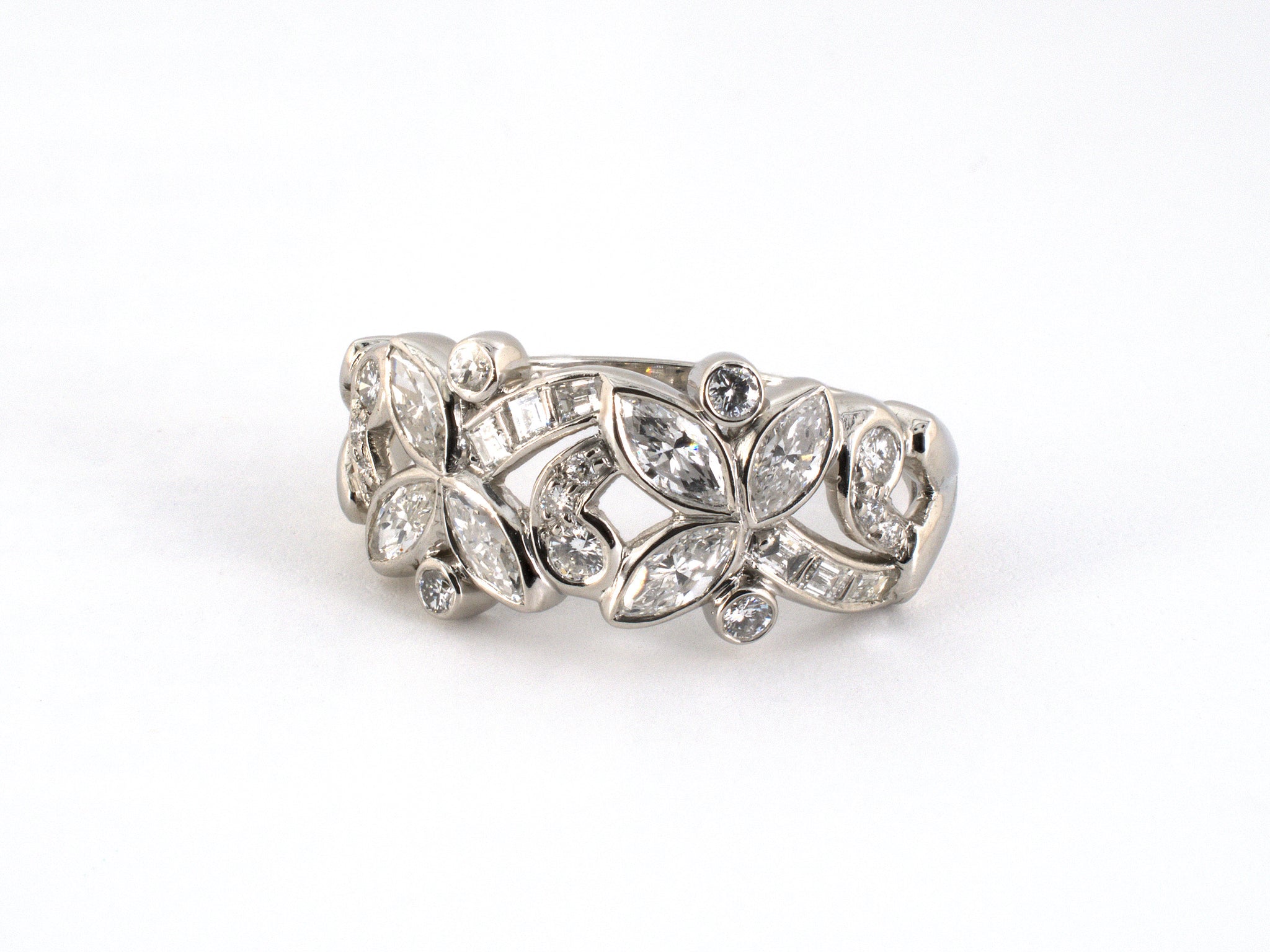 902324 - Circa 1950s Maurice Tishman Platinum Diamond Floral Wedding Band