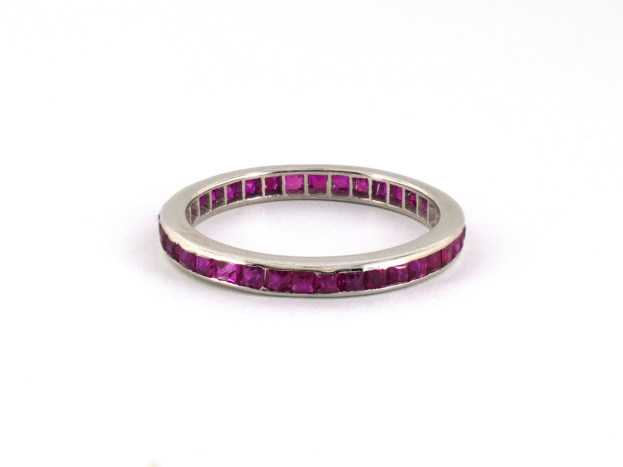 Platinum Ruby Channel Set 2.2Mm Wide Eternity Ring, Size 4 3/4, 36 Calibre Rubies Est 1.25 CTS