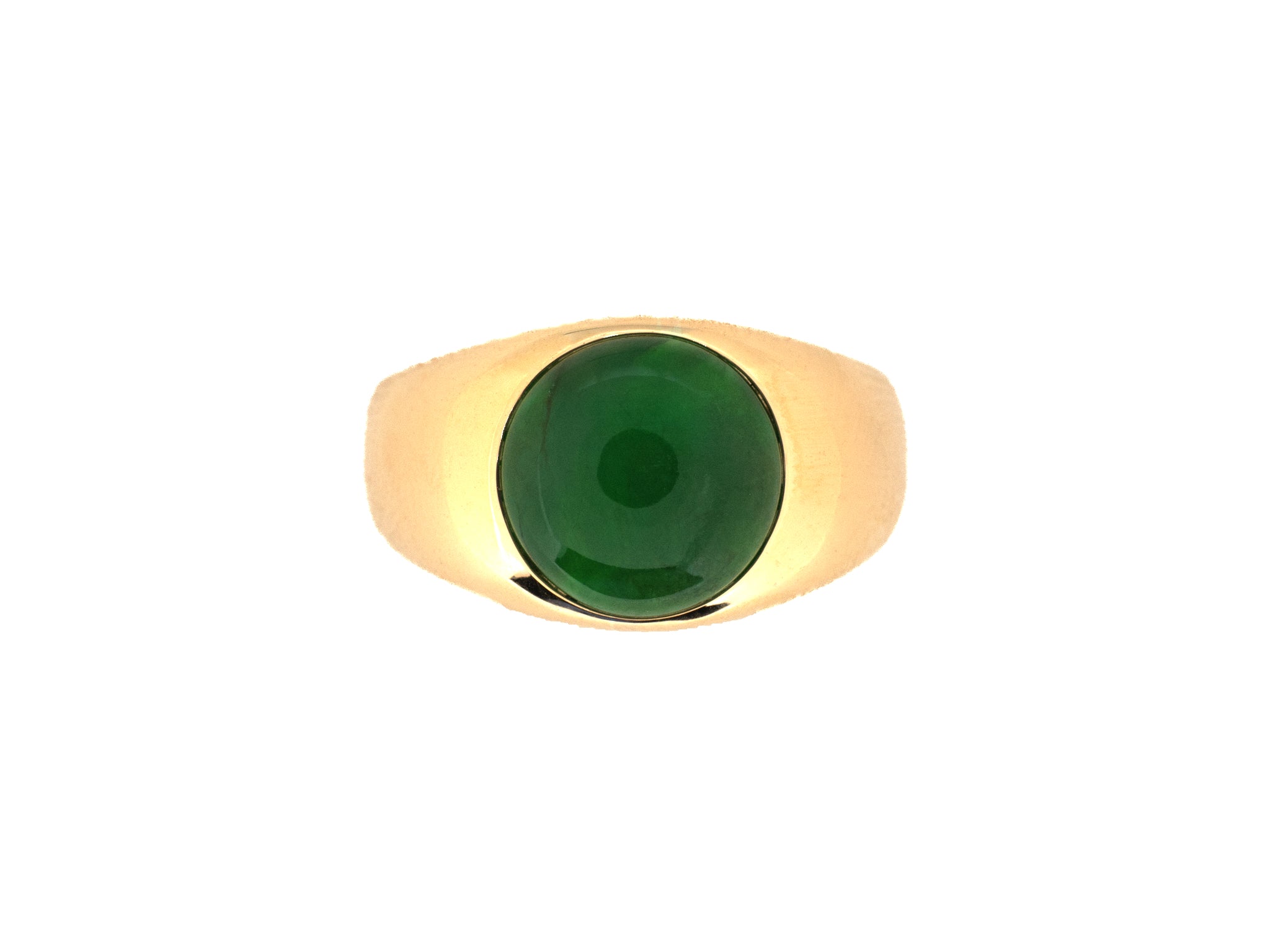 97403 - Gold GIA Jadeite French Gypsy Gents Ring