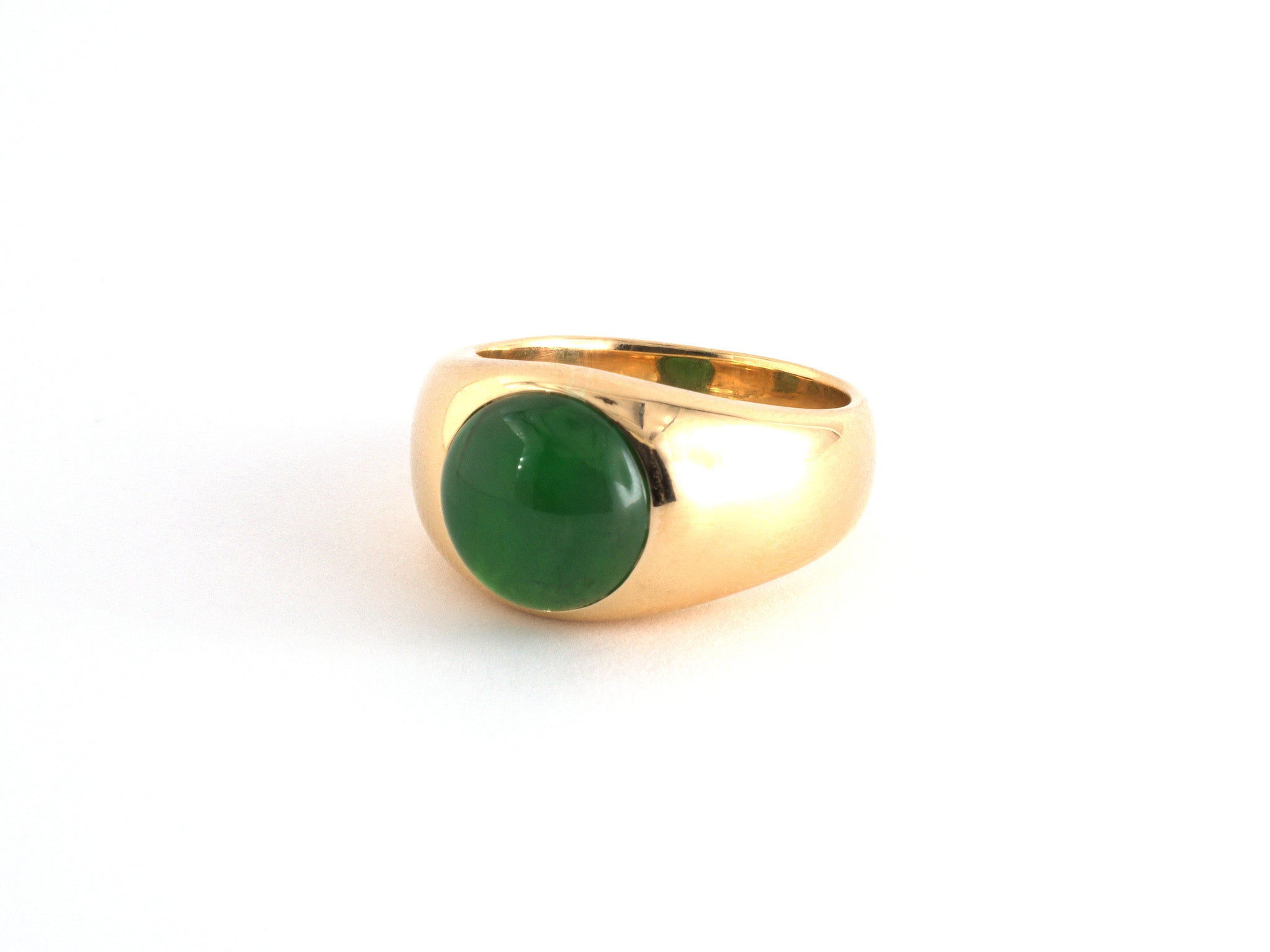 18K Yellow Gold GIA Jadeite French Gypsy Gents Ring, Size 7, 1 Jadeite 3.55 CTS (GIA: Natural Jadeite, No Treatment)