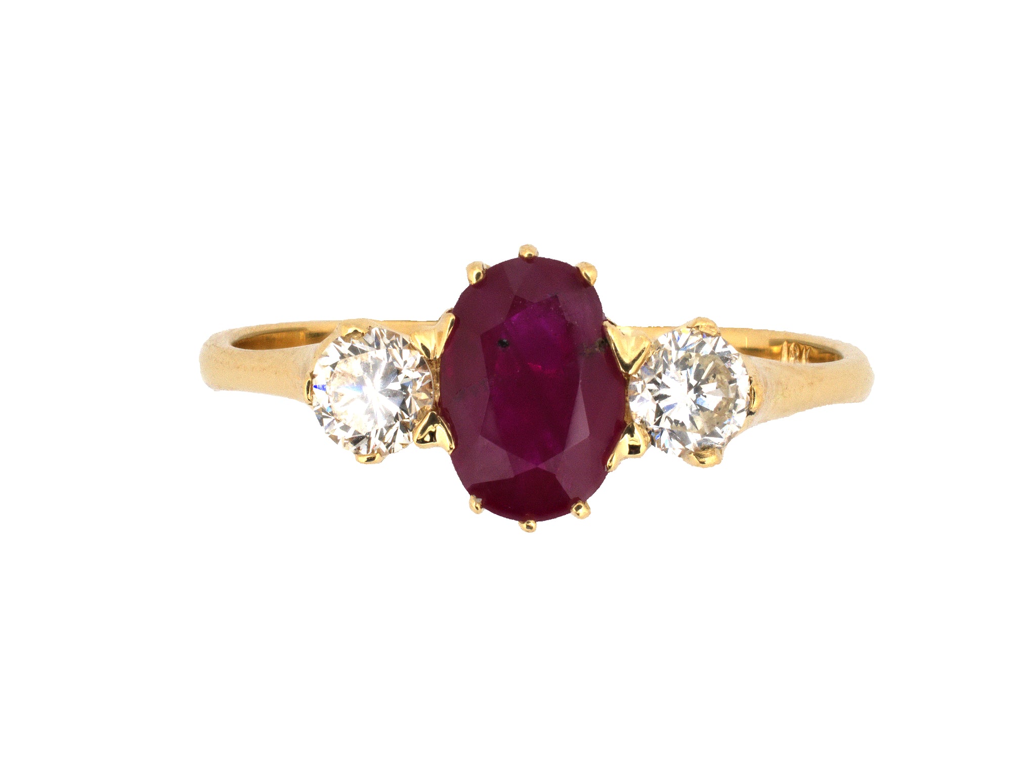 98508 - Gold Burma Ruby Diamond 3-Stone Ring
