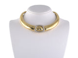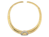 18K Yellow Gold Platinum Diamond "A Clunn" Buckle Ornament Circa 1980S Hinged Choker Collar Necklace, 14 1/2", 64 Diamonds Est 2.35 CTS