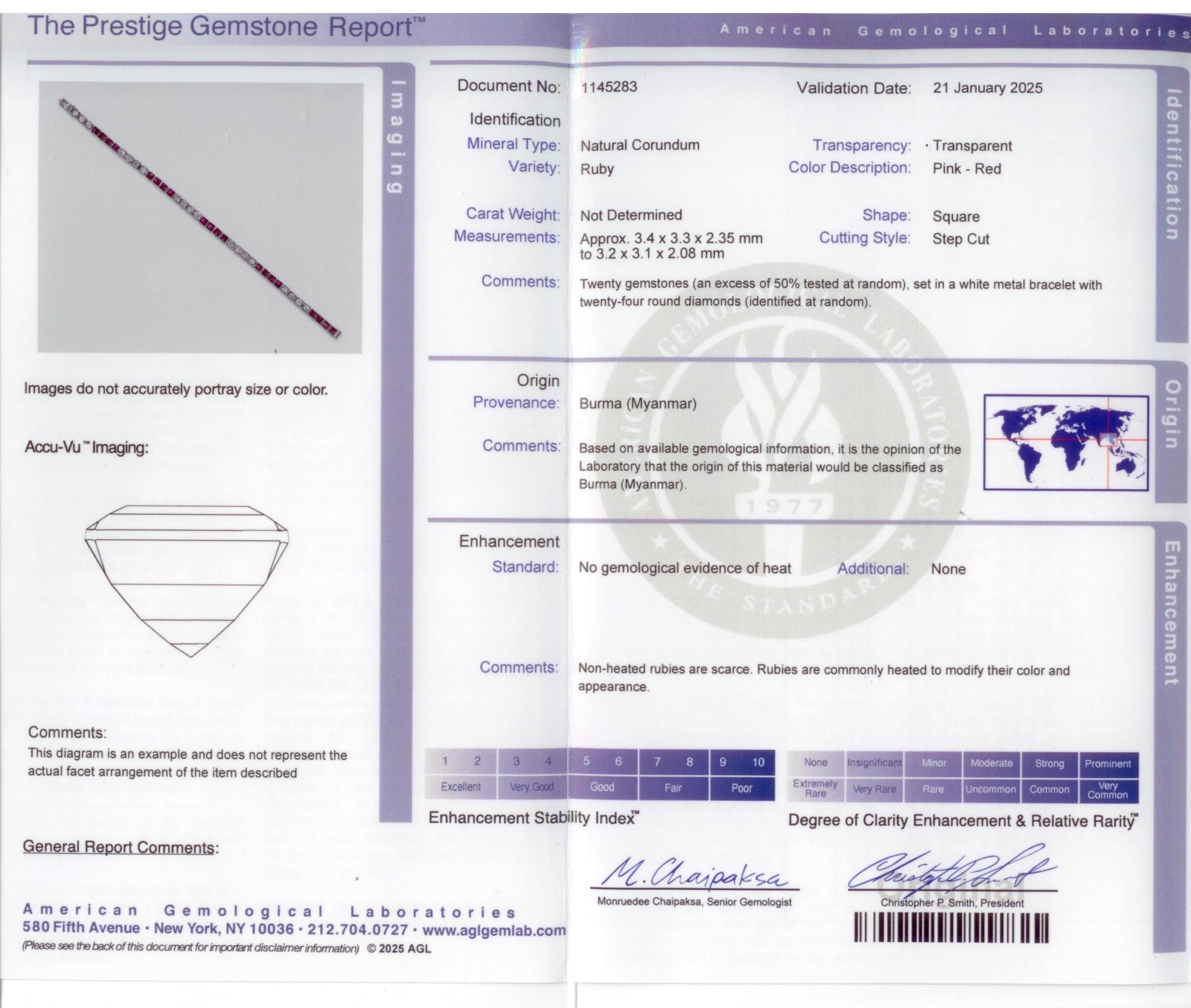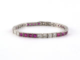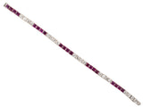 Platinum Diamond Burma Ruby Art Deco Chased Sides Alternating (4X4) Straight Line Bracelet, ( 6 5/8" - 7 1/2" ), 24 Diamonds Est 2.75 CTS 20 AGL Certified Burma ("No Heat") Rubies Est 5.50 CTS