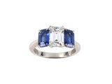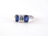 Platinum GIA Diamond Sapphire 3-Stone Size 6 Ring, 1 GIA: (E-VS1) Diamond 1.16 CTS, 2 EMC Sapphires 1.72 CTS